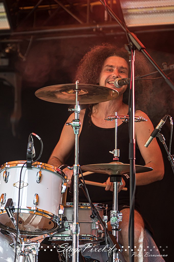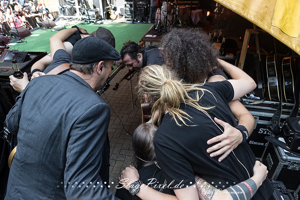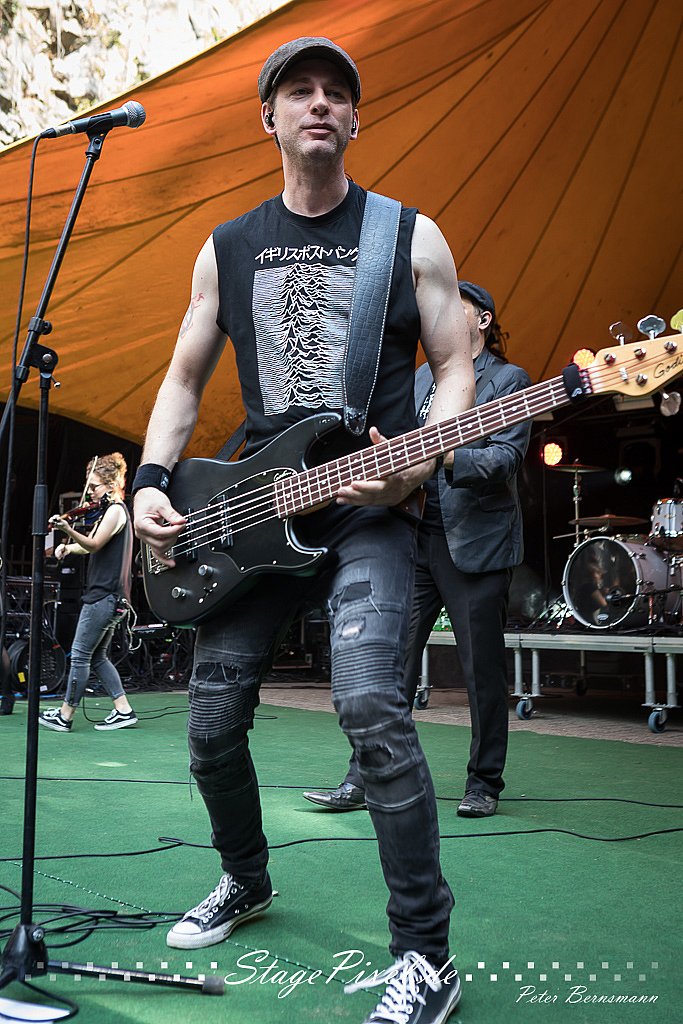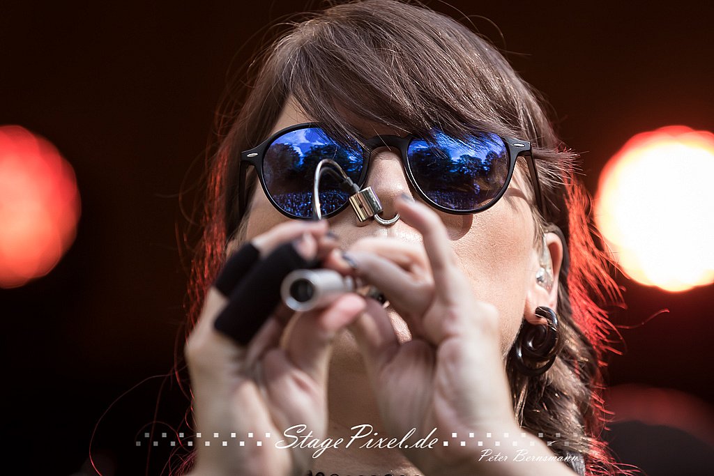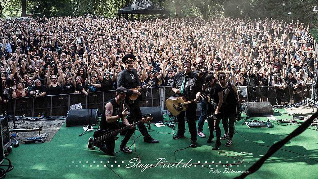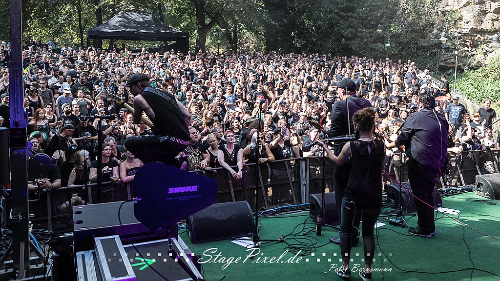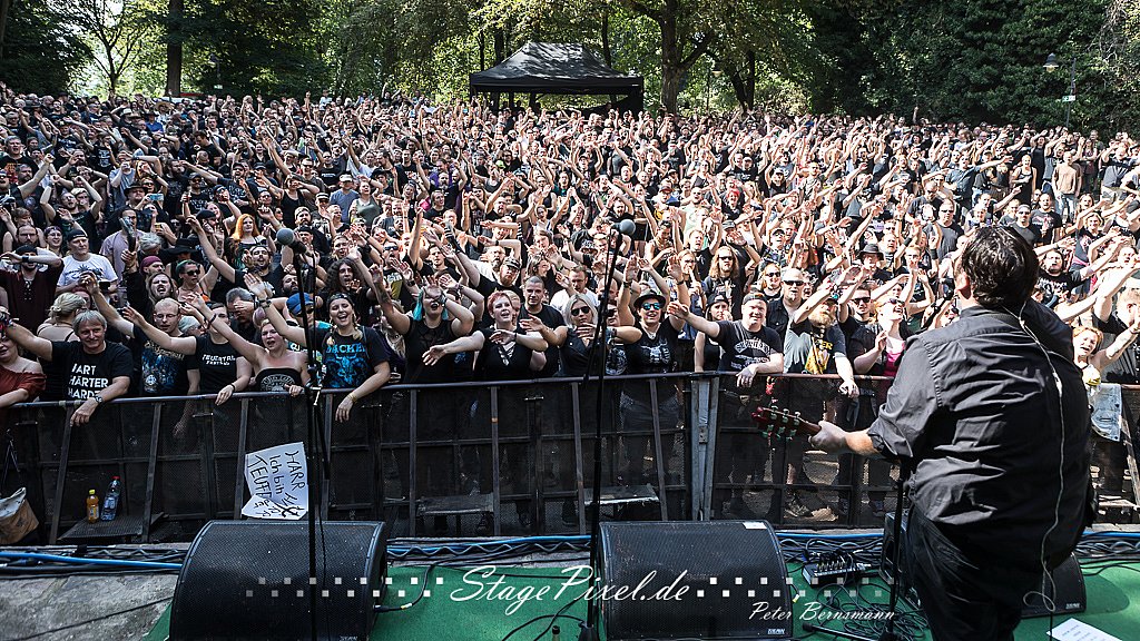 Das Feuertal Festival auf der Waldbühne Hardt in Wuppertal ist jedes Jahr im August ein beliebter Treff der schwarzen Szene. Bei ausverkaufter Veranstaltung feierten am 31.08.2019 rund 2.500 Fans bei bester Laune und schönstem Wetter. Lediglich ein Platzregen sorgte für eine kurze Unterbrechung der Veranstaltung, denn auf der Bühne sind nicht alle Flächen regensicher.